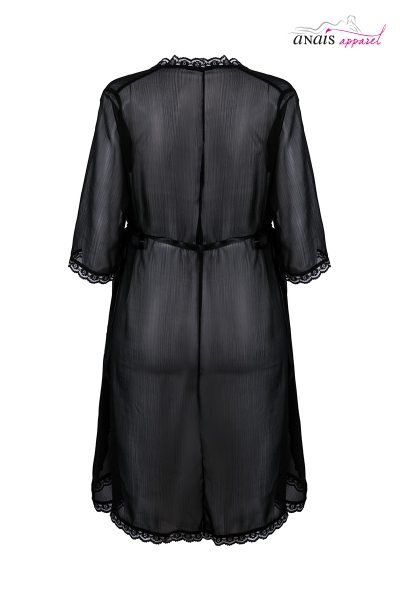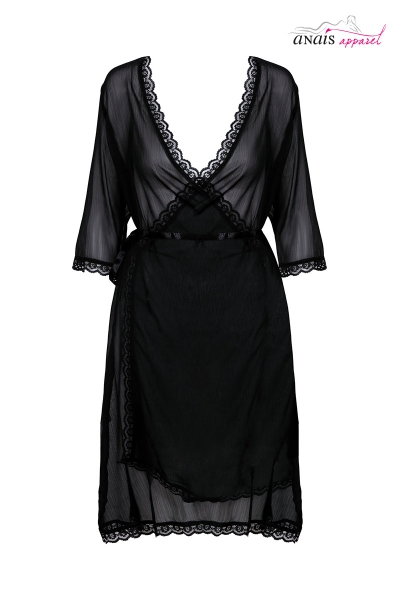 Le modèle Islla de la gamme Anaïs Lingerie est un élégant déshabillé en tulle noir transparent façon tissu crêpe. Cette lingerie glamour est ouverte à l’avant, elle s’enfile comme un peignoir et se noue a la taille grâce à une première attache à l’intérieur, à droite de votre buste puis l’attache extérieure à gauche ce qui lui permet de rester bien fermée. Elle vous fera penser à une robe portefeuille.
